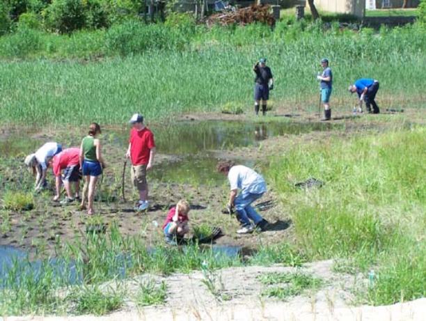 Spartina plugs planted 1 every